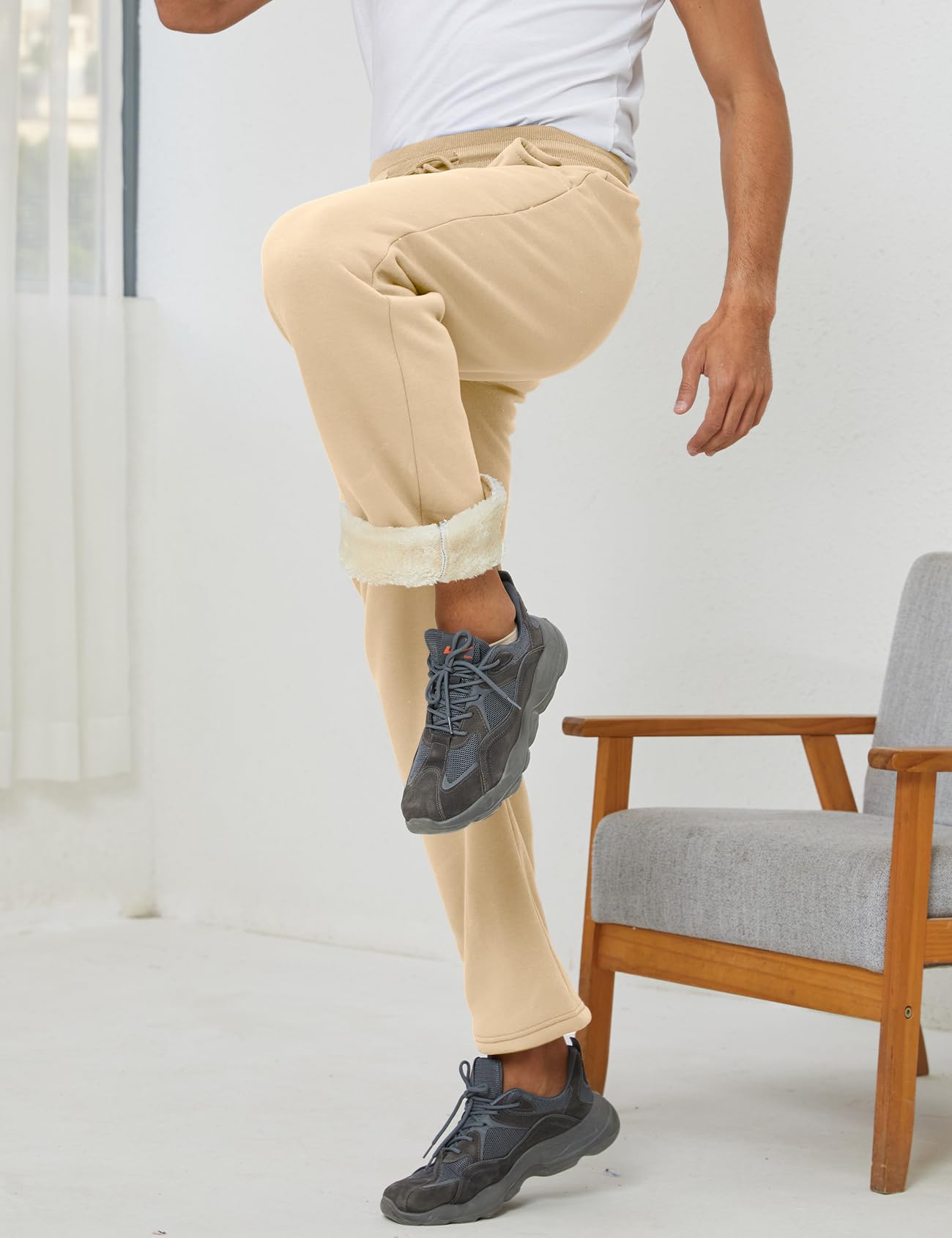 Men's Winter Fleece Pants Sherpa Lined Sweatpants Straight Leg Active Running Sweat Pants Comfy Lounge Pants